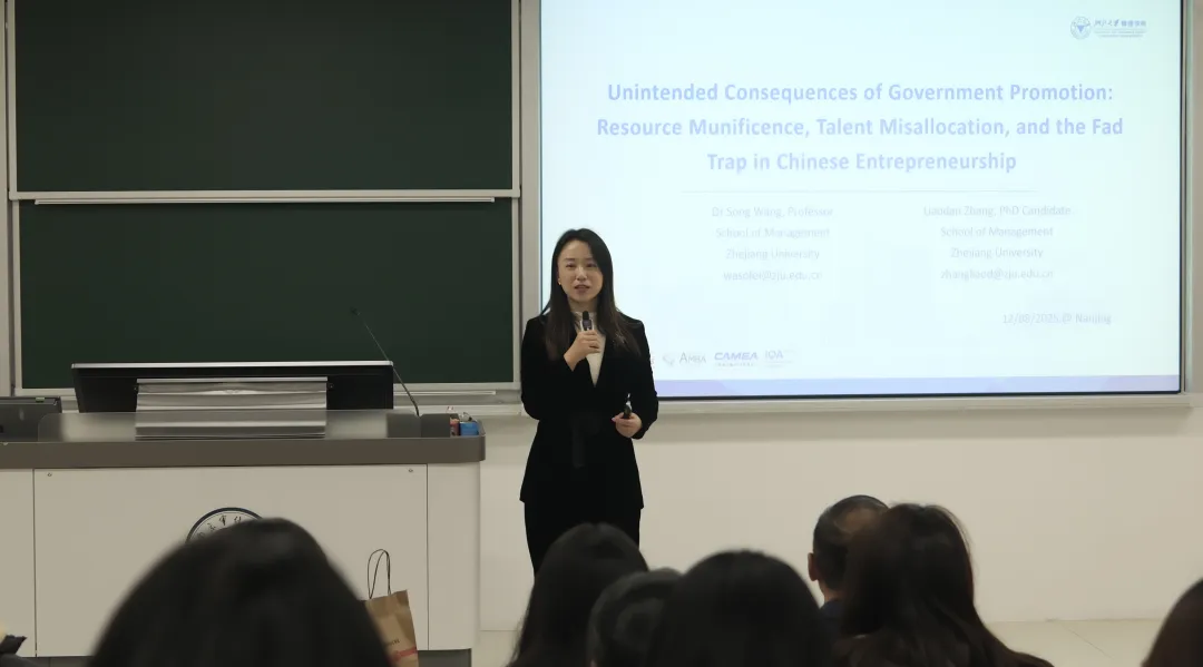 贾琼老师在互动交流中指出,本次讲座不仅揭示了“资源注入未达预期效果”的反常识发现,更完整展现了“问题识别——理论构建——数据验证”的科学研究范式,兼具学术前沿性与现实指导意义;她进一步就“如何精准帮扶低天赋创业群体”提出建议。