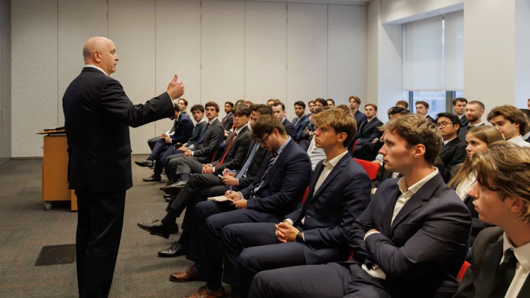 法国兴业银行美洲客户覆盖部执行主席Donald Sutton向同学们热情致辞