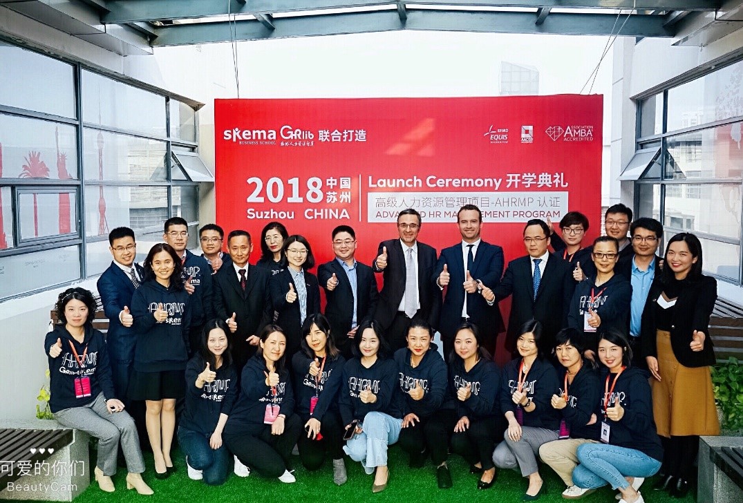10月26日, 第一期《高级人力资源管理项目 • AHRMP认证》高管培训项目开学典礼在SKEMA商学院中国校区成功举办。该项目由全球少于1%同时获三大权威认证(AACSB、EQUIS、AMBA)的顶级商学院SKEMA商学院和国内领先HR平台-环球人力资源智库联手打造。来自16个不同行业的20位人力资源领域高层管理者成为了该项目的首批学员。