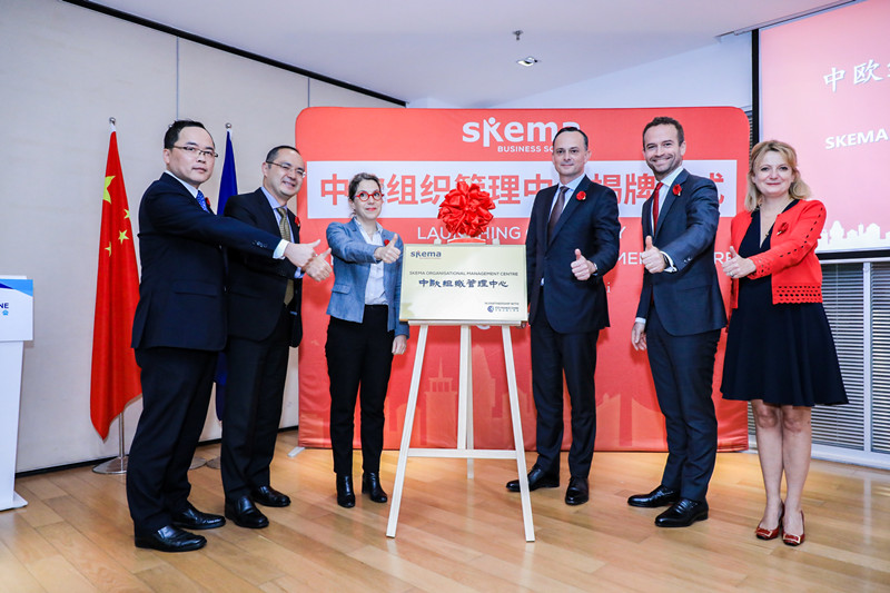 中国法国工商会主席Christophe Lauras乐睿思先生称,该中心的成立是促进中法两国工商界紧密合作的又一举措,为推动中法乃至中欧经贸教育关系健康发展添砖加瓦。法国驻上海总领事馆教育领事Dr. Séverine BOUÉ白丽娜博士也发表演讲,称SKEMA中欧组织管理中心的成立是一座里程碑,将成为重要的商科中心,法国使领馆乐于见到SKEMA商学院分享知识和贡献。