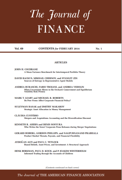 《Journal of Finance》 (JF) 创刊于1946年, 是美国金融协会的官方学术刊物,刊登金融学所有主要领域的最前沿研究。