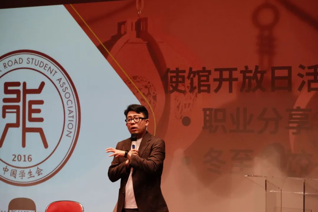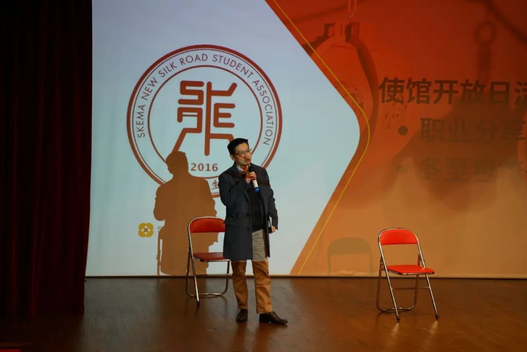 随后,中国工商银行经理贾方舟先生分享了自己的职业道路选择经历和SKEMA新丝路学生会2016年创立时背后的故事,在一个比较轻松的氛围中深入分享了他旅法10年的酸甜苦辣。